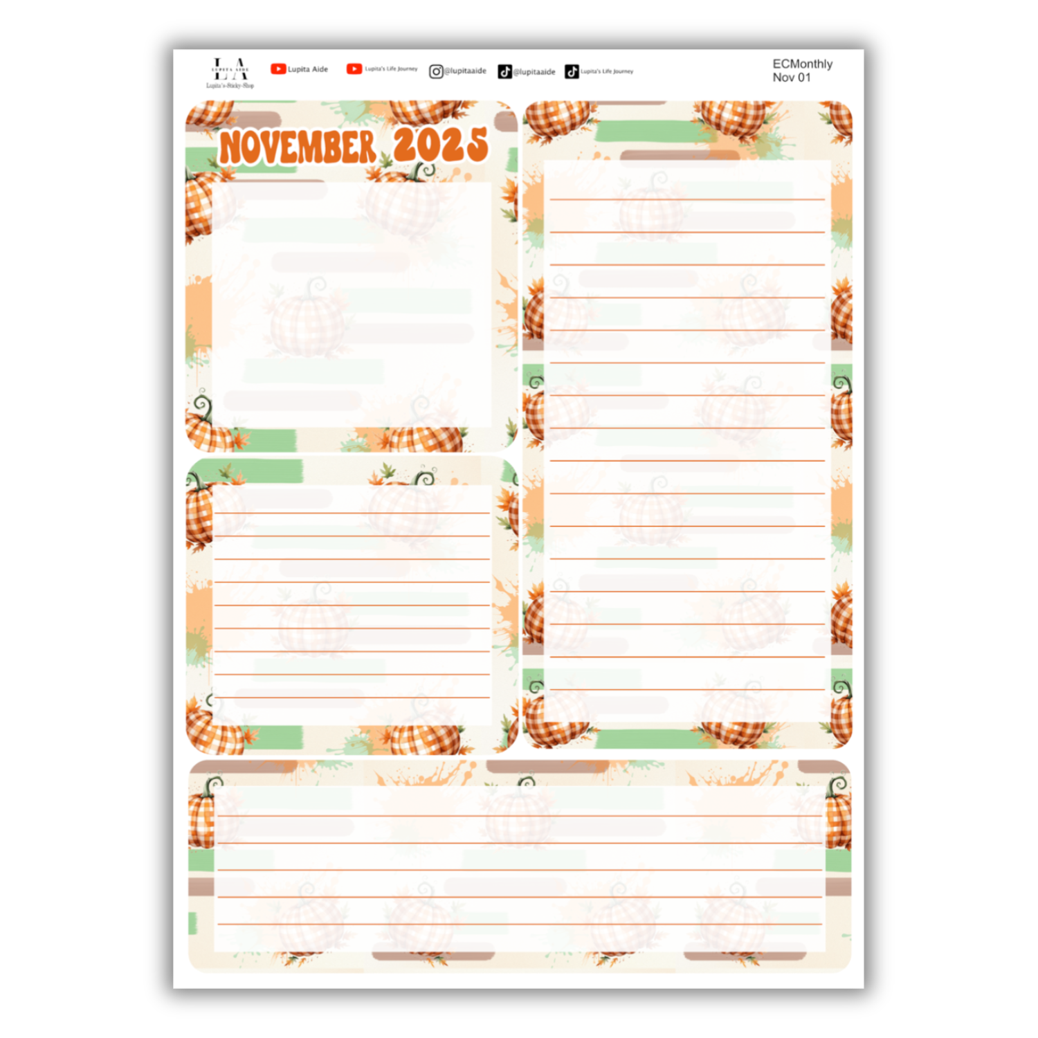 Pumpkin Splash - Erin Condren Monthly Planner November